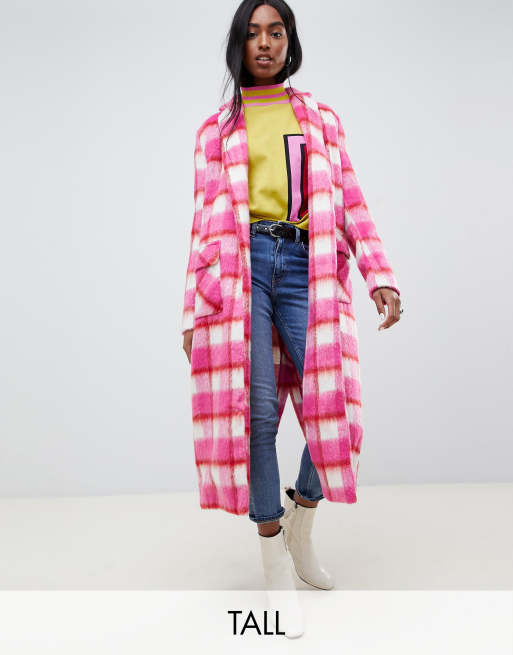 Check longline shop coat