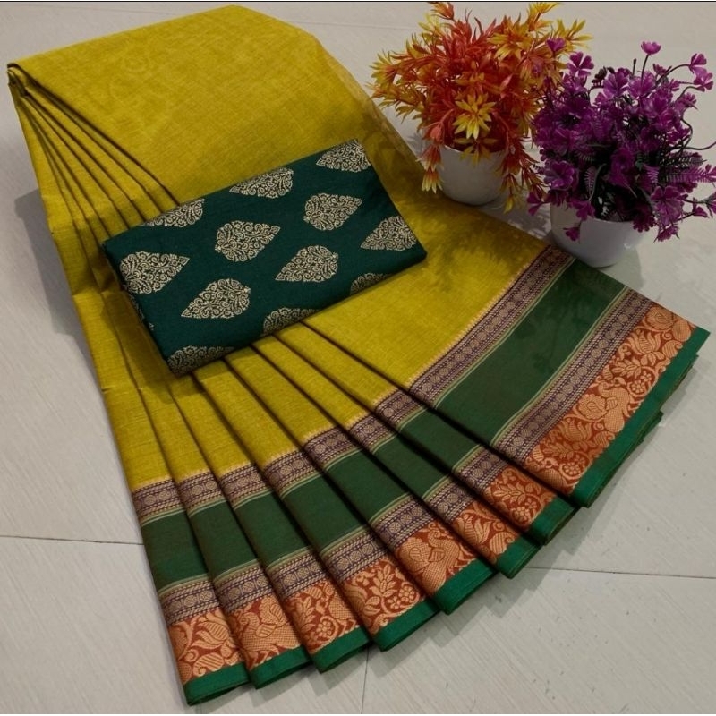 Product Item: Chettinad cotton sarees shop with kalamkari blouse price