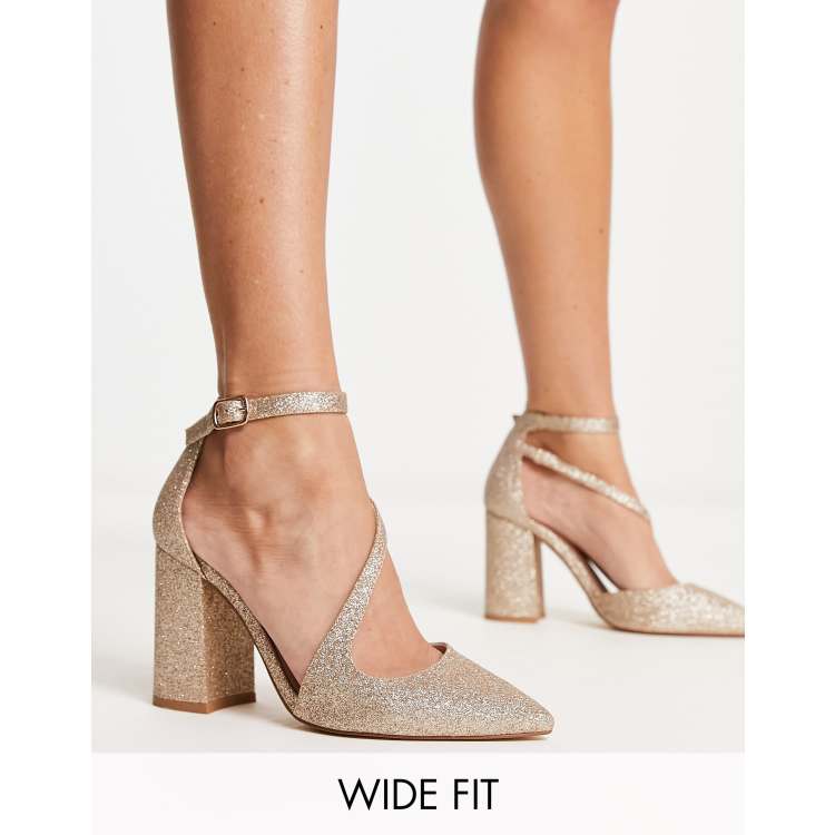 Decollete oro shop tacco largo