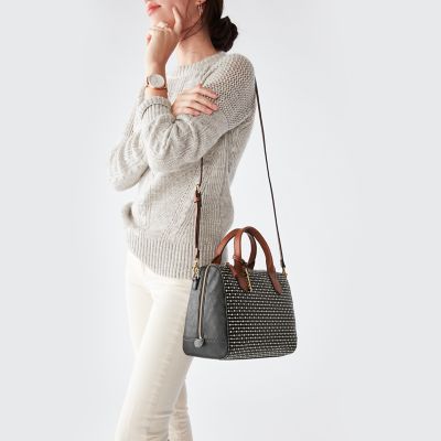 Product Item: Fossil fiona shop satchel black stripe