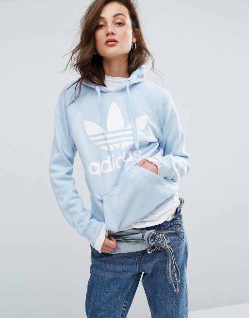 Adidas trefoil logo shop light blue hoodie