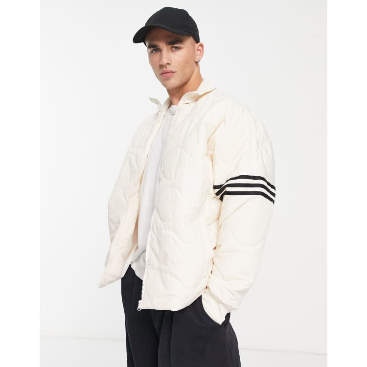 Product Item: Adidas white jacket shop with black stripes