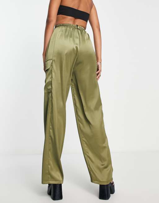 Khaki satin shop cargo pants