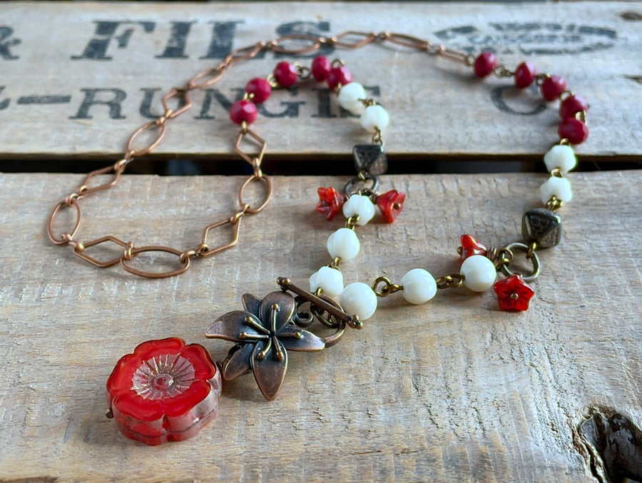 Large red shop bead necklace