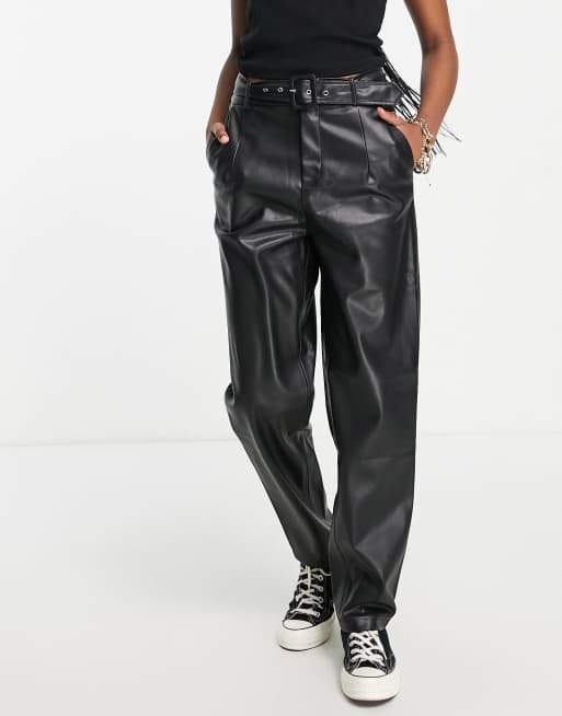 Leather look shop belted trousers