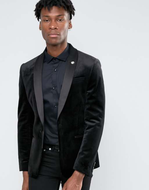 Mens black velvet shop blazer slim fit