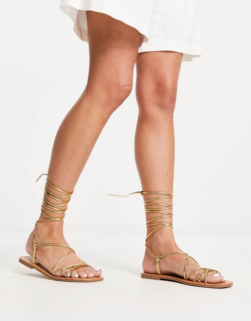 Metallic strappy shop flat sandals