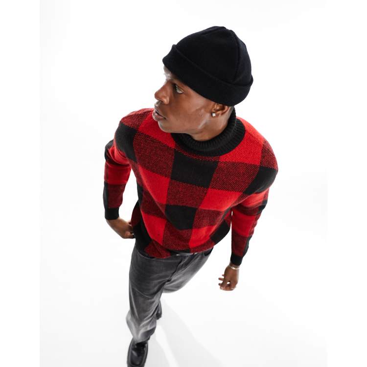 Product Item: Red and shop black plaid sweater
