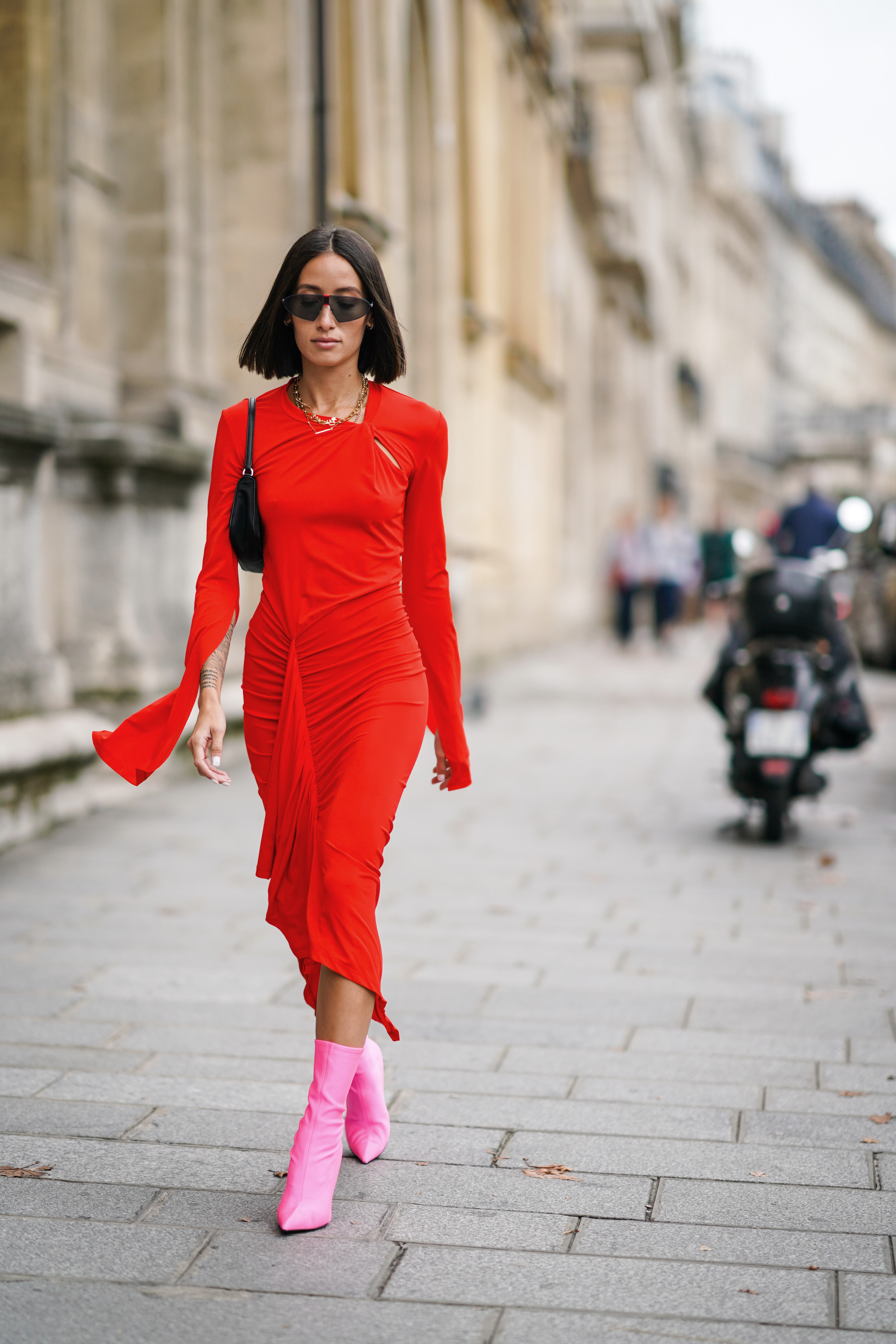 Red dress shop pink heels
