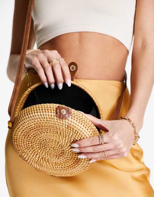 Round rattan shop crossbody bag