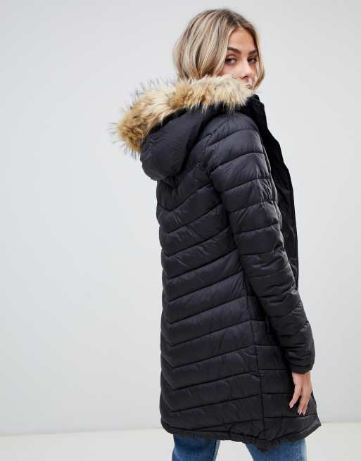 Superdry chevron padded parka shop with faux fur hood