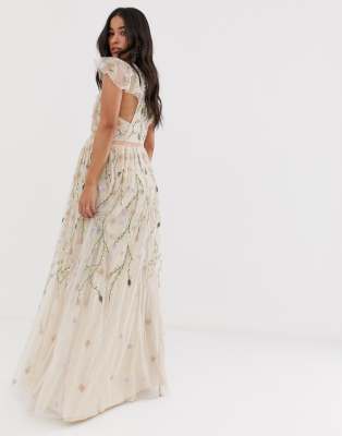 Asos design maternity pretty embroidered floral and shop sequin mesh maxi dress