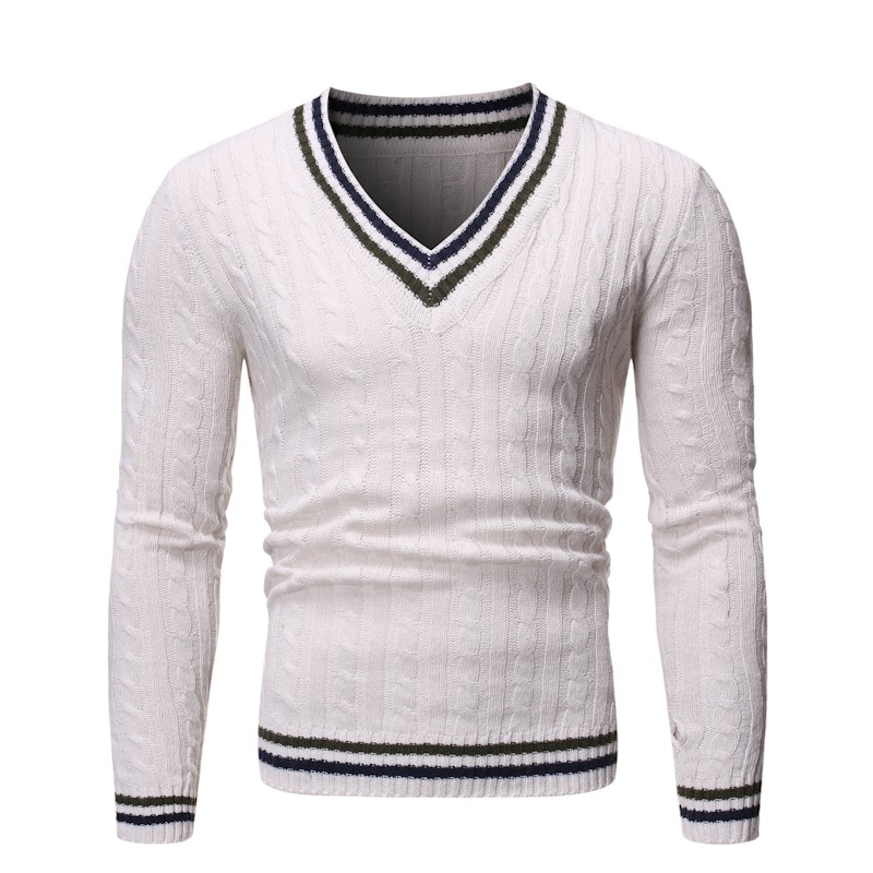 Product Item: White v shop neck sweater mens