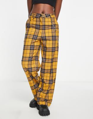 Yellow tartan shop trousers womens