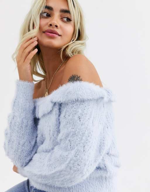 Product Item: Baby blue off shop the shoulder sweater