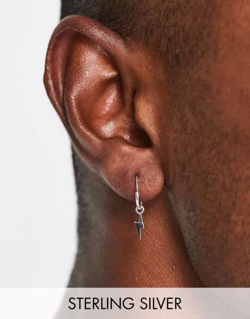 Lightning bolt shop hoop earrings silver