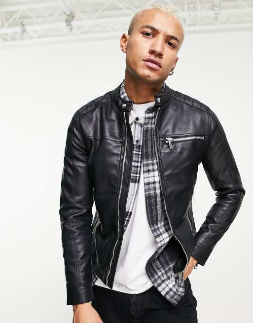 Bershka faux shop leather biker jacket