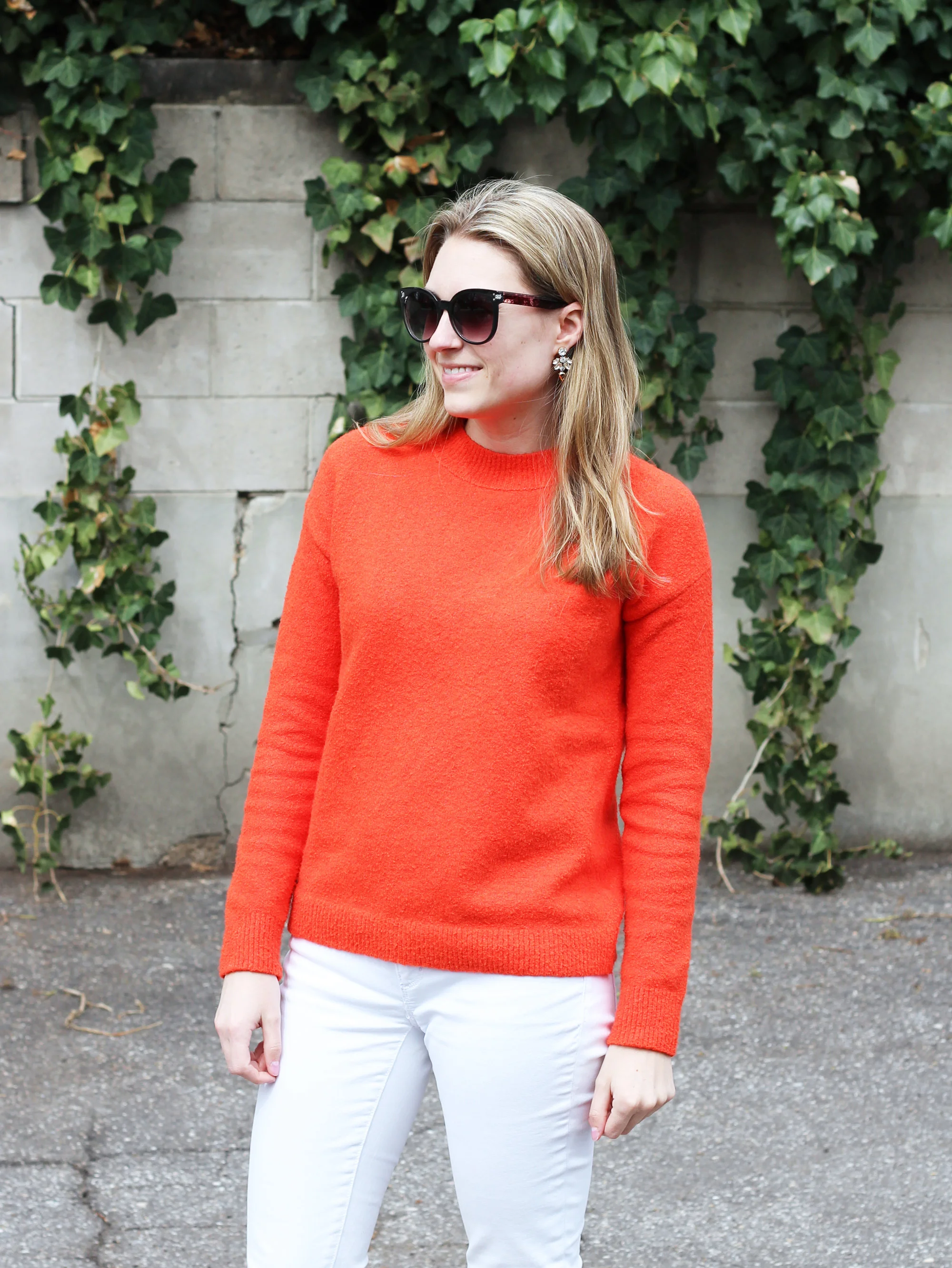 Bright red shop sweater