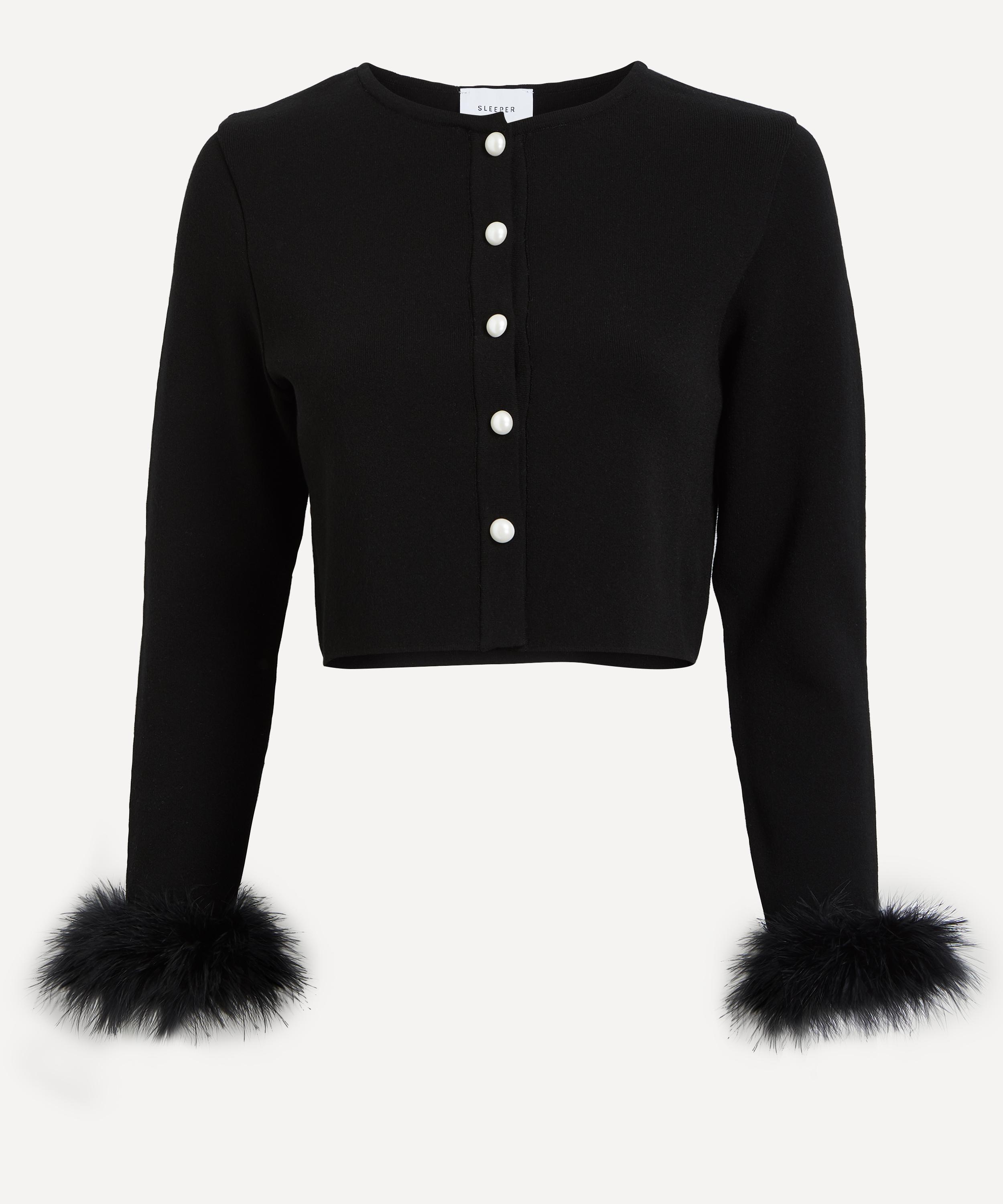 Product Item: Cardigan with shop feather trim